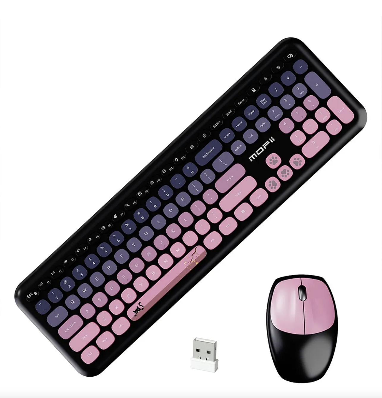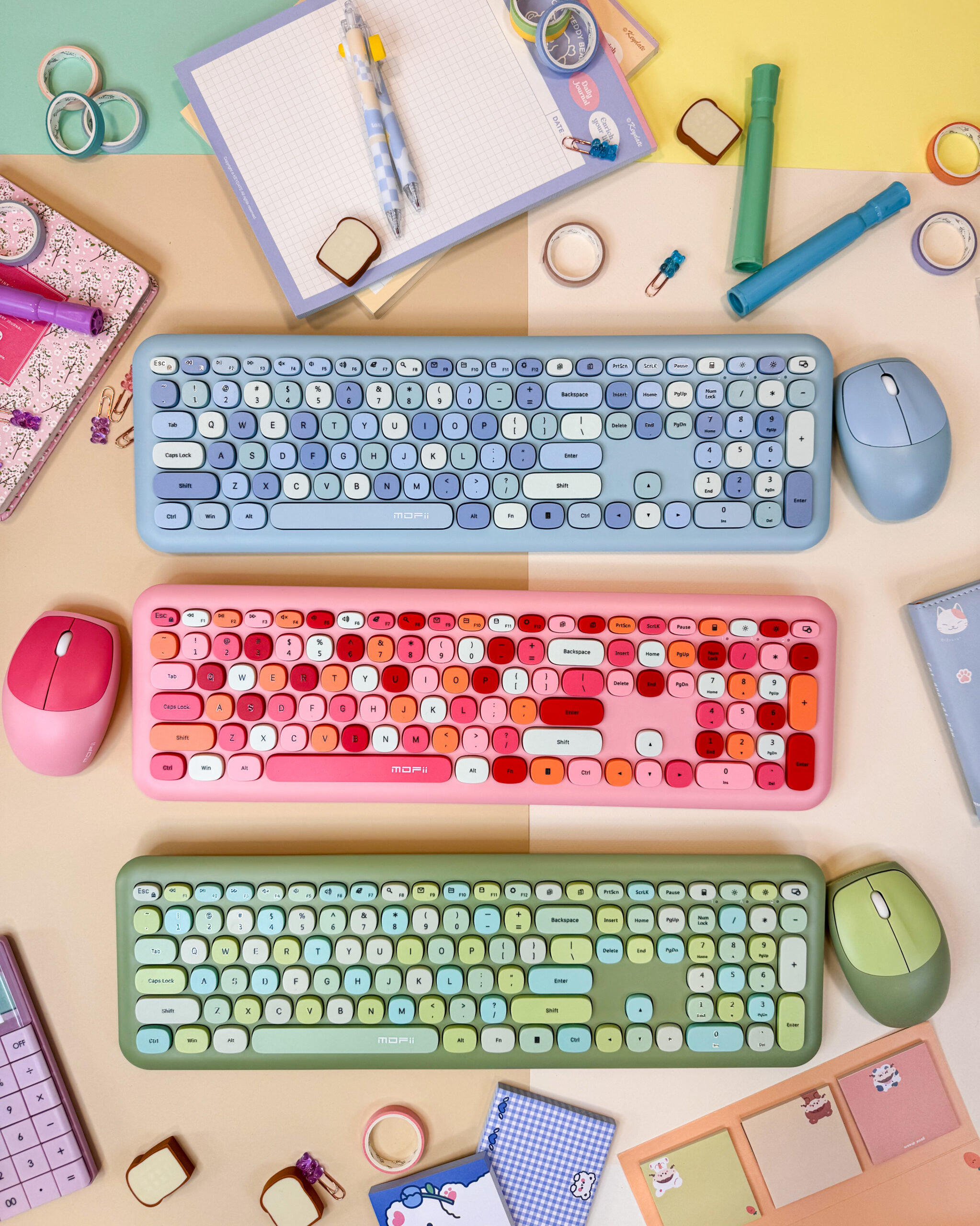 El Teclado Mofii 666 tiene un diseño retro multicolor que mezcla funcionalidad con estética. Ideal para estudiar, trabajar o decorar tu espacio con estilo.